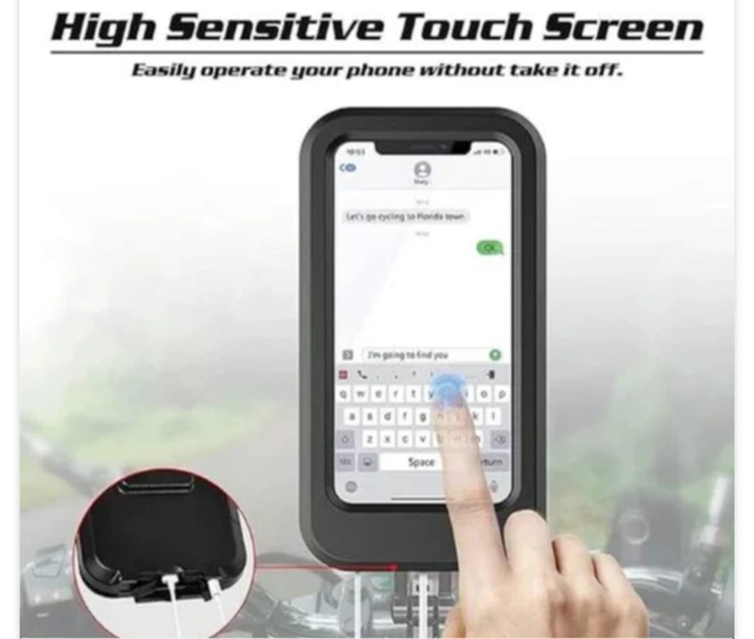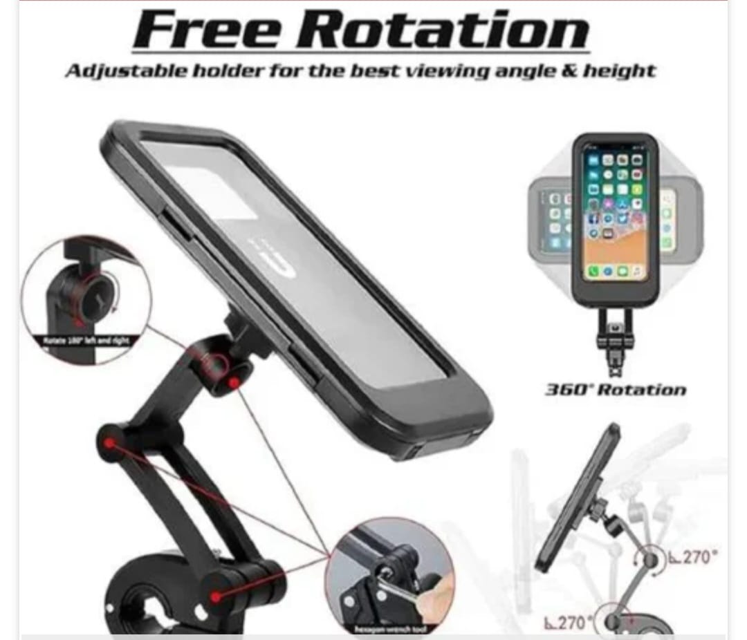 WIDE COMPATIBILITY : This universal bike cell phone holder is suitable for phones with screen sizes ranging from 4.7 to 7.2 inches and a thickness of up to 15mm, including phones with cases. It is compatible with various smartphone models, including iPhone 11, 12 Pro Max, Mini, Xs, XR, X, 8 Plus, 7, 6s, 6, as well as Galaxy S10, S10+, S9, S8, Note 9, and other smartphones.SENSITIVE TOUCH SCREEN : The bike phone mount features a screen made of professional, sensitive TPU material. The transparency of the touch screen allows you to clearly see your phone's display while riding. You can use touch functions and capture front and back camera videos. (Note: Face ID works, but Touch ID does not.)ADJUSTABLE 360 ROTATION : The adjustable bicycle phone holder and the handlebar connector are connected by a universal spherical joint, enabling you to rotate your phone 360 degrees to any angle and height that suits your preference. The case can be easily removed from the rotatable ball joint, allowing you to carry it with you at any time.WATERPROOF & SECURITY : Our phone case features a fully enclosed design with a high level of waterproof performance (IPX6), providing complete protection for your phone even when riding in the rain. It also includes built-in magnets to keep your phone securely in place, even on rugged roads.EASY INSTALLATION :The bicycle phone mount is easy to install without the need for tools. Simply loosen the tie bars, tighten the nuts, and secure it to the handlebar. The size is adjustable to fit handlebars with diameters ranging from 0.8 to 1.1 inches (22-28mm). It is perfect for use with your MTB road bike, E-bike, motorcycle, stroller, shopping cart, electric scooter, and more. (Note: Please refer to the provided video and description for specific installation instructions.)